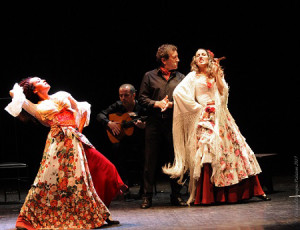 « Carmen Flamenco » est à la croisée du roman de Mérimée, de l’opéra de Bizet adapté dont les airs principaux sont traduits et chantés en espagnol tantôt dans leur version lyrique, tantôt dans une version flamenco et de la danse Flamenco…